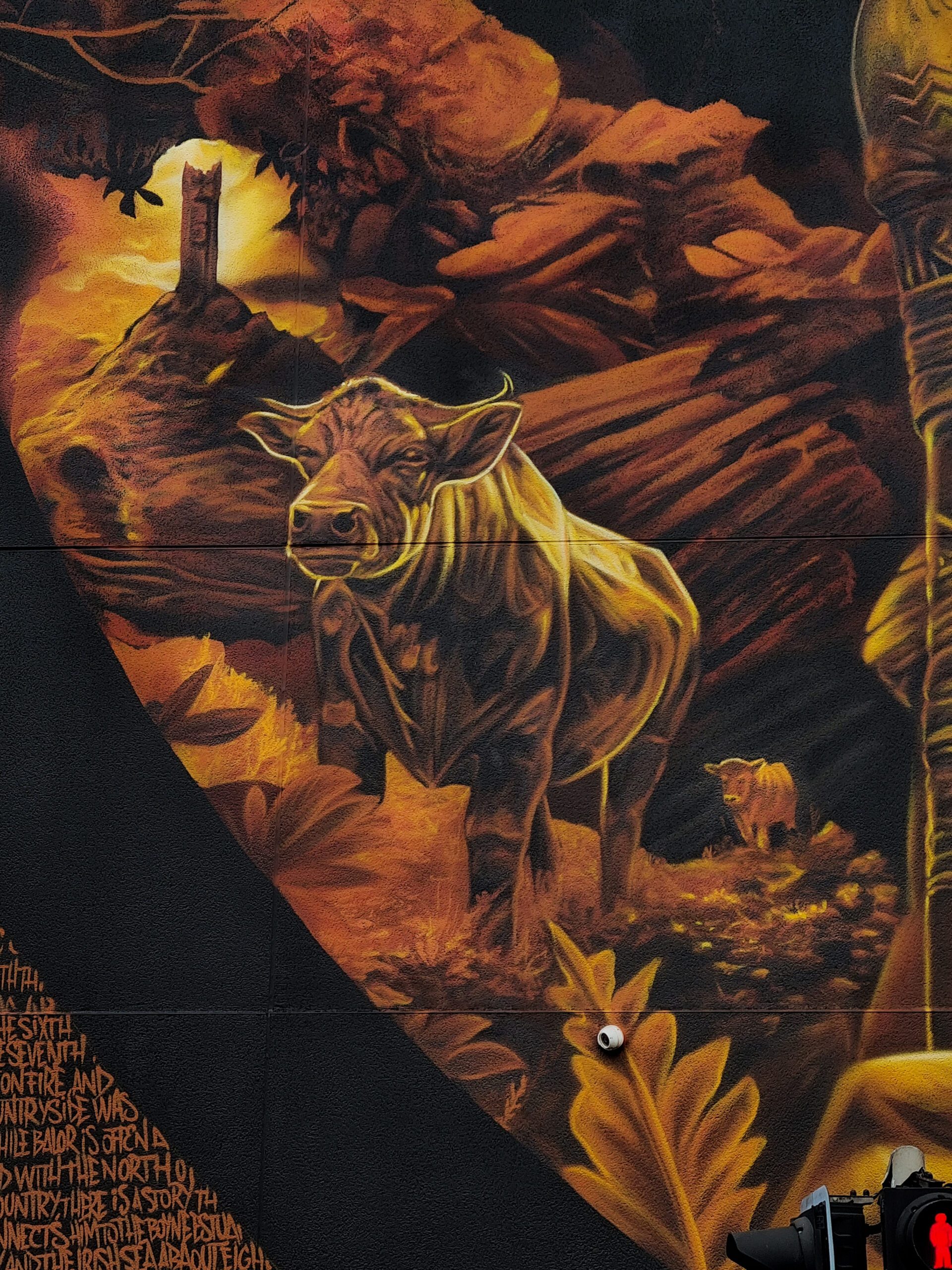 Indicó al sirviente mantener siempre al ternero delante para que la vaca no mirara atrás y no notara que abandonaba Ulster. Todo fue bien hasta cruzar el río Boyne: la vaca miró hacia atrás, vio las montañas de Mourne al norte y lanzó un terrible bramido. Balor, al girarse, olvidó cubrir su ojo: la vaca y el ternero quedaron convertidos en piedra.